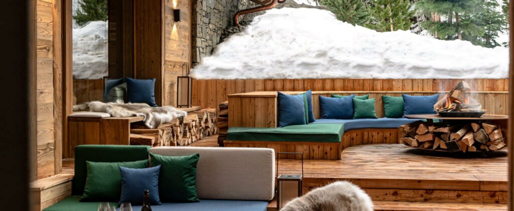 Le Chalet 1550 situé à Courchevel est un parfait exemple de ce décors net ou le bois et le blanc sont rehaussés de couleurs simples et vives. https://www.iconic.house/le1550