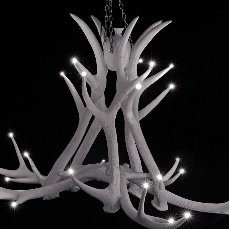 C’est une équipe d’artisans réputés désirant faire revivre un mobilier lié aux traditions de la chasse qui a créé ce lustre imitant parfaitement les bois de cerfs. Les récentes collections de lustres bois cerf résine blanche et leds sont revisitées sur un mode plus design et contemporain avec des imitations parfaites de bois de cerf en résine blanche, ou de toutes autres couleurs sur demande, pour une ligne d’un blanc immaculé, très tendance dans nos chalets.