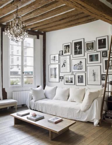 - Aérez l’espace, épurez la déco. Souvent, les propriétaires de ces appartements ont pris soin de ne pas surcharger l’espace, de jouer sur des éléments de décor comme des photos posées en nombre comme un puzzle, un miroir, des teintures lourdes. Ces éléments font une liaison avec l’ensemble de l’intérieur, comme ces photos en noir et blanc. Procédez par touches et prenez votre temps …. le secret d’une déco réussie et personnelle.